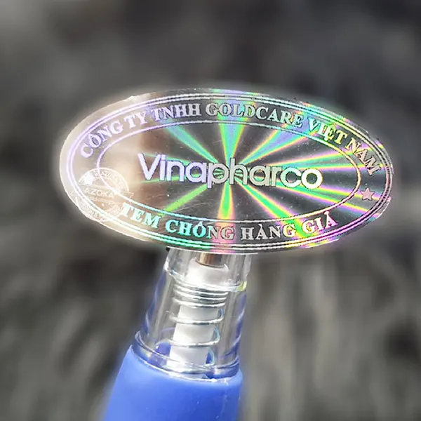 - Mẫu in tem dán decal này được in bằng công nghệ laser trên chất liệu màng Hologram.