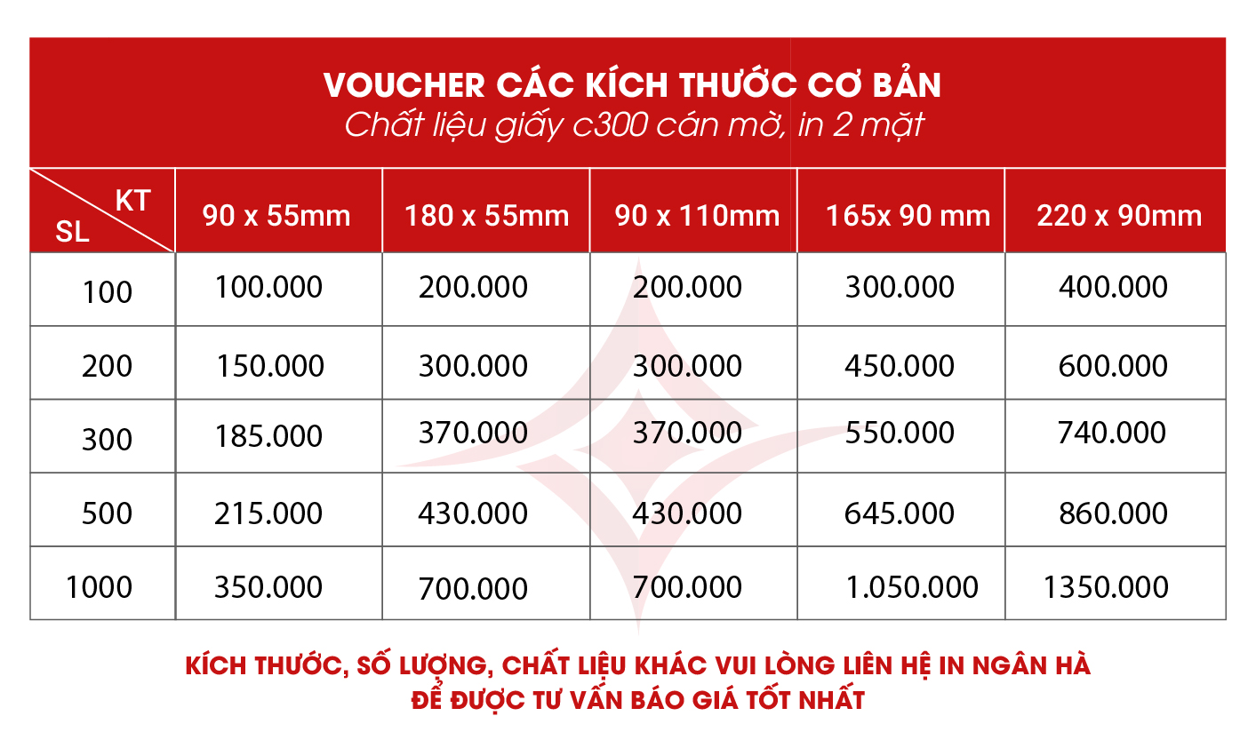 BẢNG BÁO GIÁ IN VOUCHER CÁC KÍCH THƯỚC CƠ BẢN