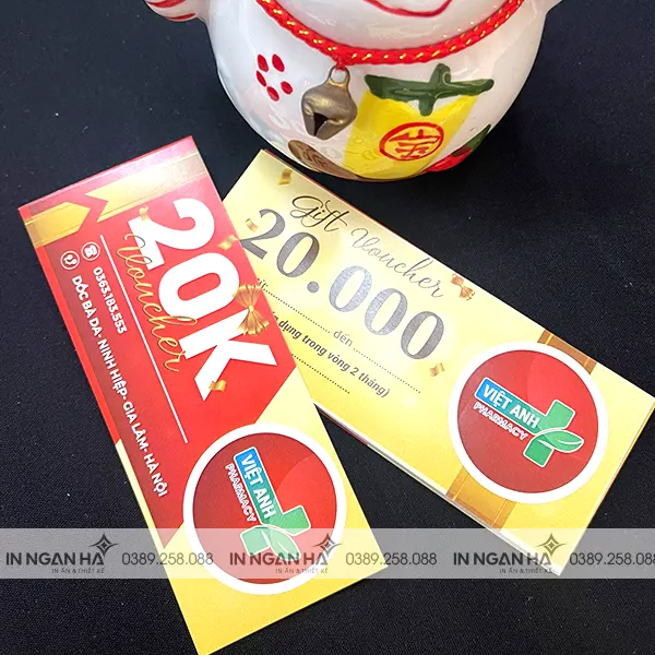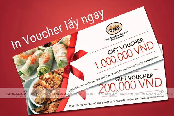 Voucher là một trong những ấn phẩm thúc đẩy bán hàng rất hiệu quả, hơn bất kỳ hình thức truyền thông giá rẻ nào, in voucher hay in phiếu giảm giá luôn là lựa chọn hàng đầu của người bán hàng nhằm tăng doanh số, tăng thị phần. Gọi ngay 0389.258.088 để chúng tôi tư vấn và báo giá rẻ nhất cho bạn.
